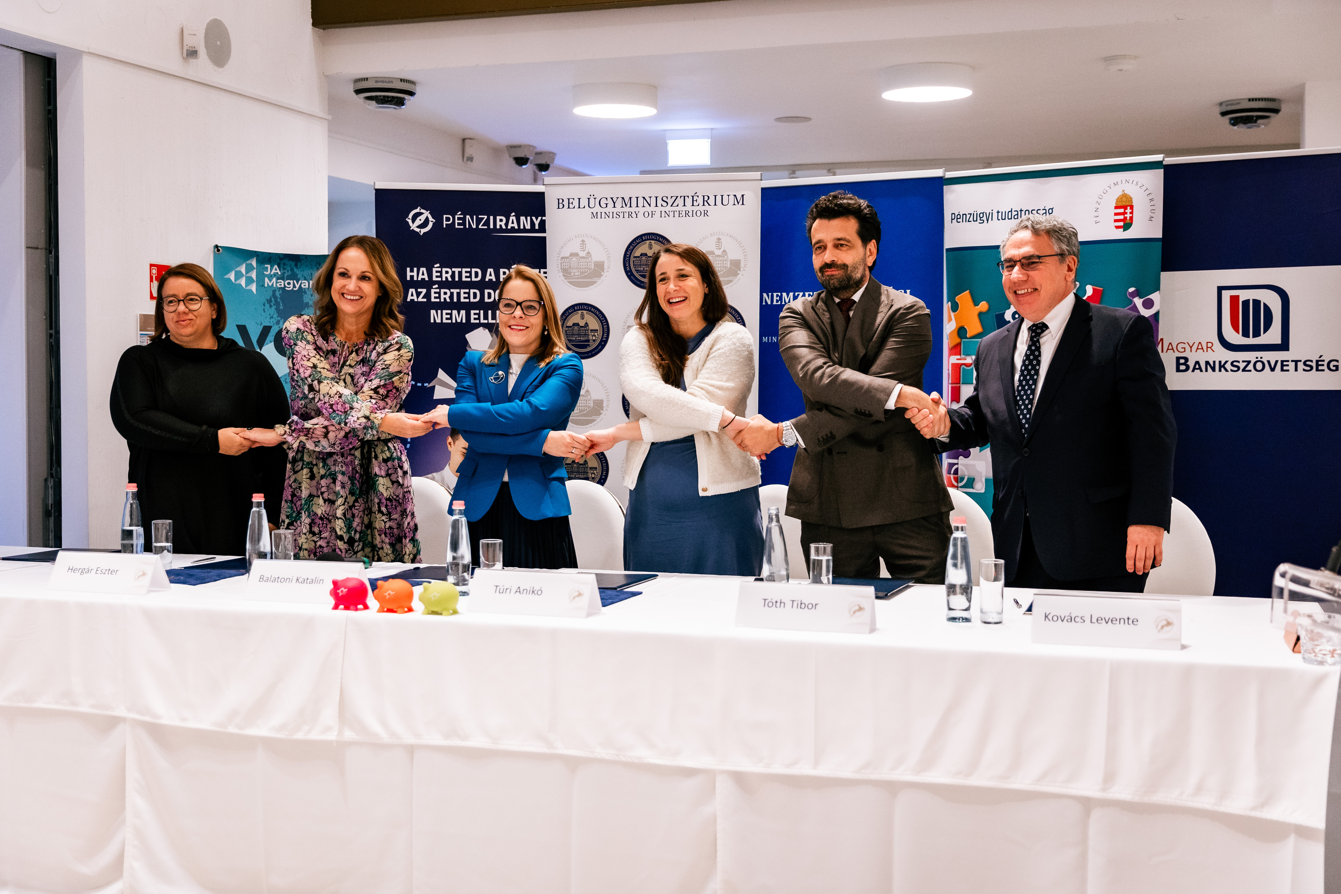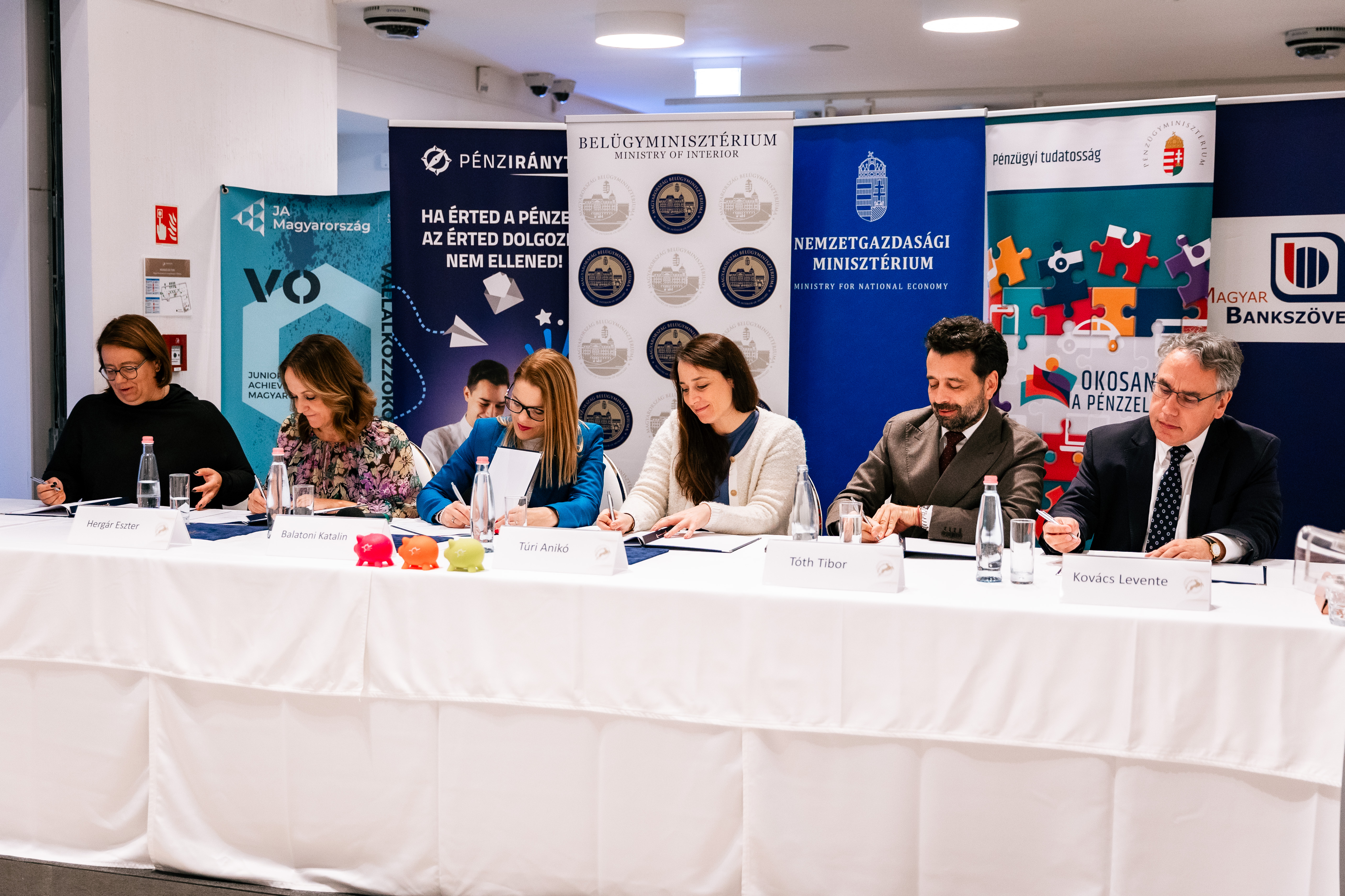 A Pénzmúzeumban ma hatoldalú együttműködési megállapodást írtak alá a PÉNZ7 sikeres megvalósítása érdekében: a Belügyminisztérium projektgazdaként, a Nemzetgazdasági Minisztérium, a Pénzügyminisztérium, a Magyar Bankszövetség, a Pénziránytű Alapítvány, valamint a Junior Achievement Magyarország Alapítvány a PÉNZ7 együttműködő szakmai partnereiként írták alá a dokumentumot.